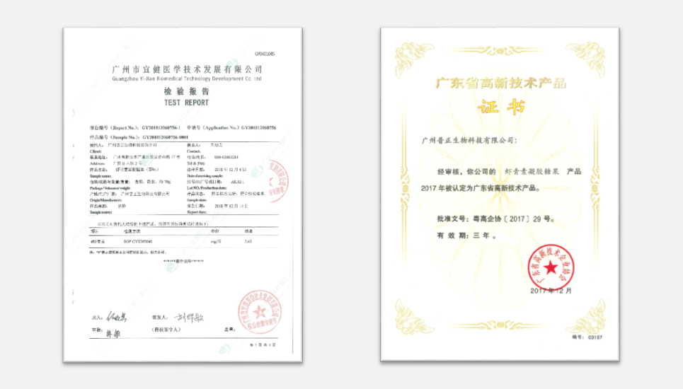 蝦青素凝膠糖果于2017年12月被認定為廣東省高新技術(shù)產(chǎn)品。