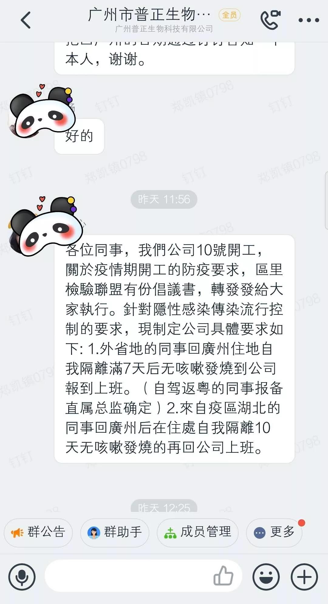 1.外省地的同事回廣州住地自我隔離滿7天后無咳嗽發(fā)燒到公司報到上班。(自駕返粵的同事報備直屬總監(jiān)確定)2.來自疫區(qū)湖北的同事回廣州后在住處自我隔離10天無咳嗽發(fā)燒的再回公司上班。