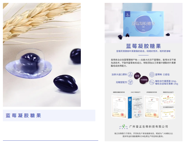 藍(lán)莓被譽(yù)為“水果皇后”和“漿果之王”。美國 Tufts 大學(xué)的分析顯示,在40種具有抗氧化效力的蔬菜和水果中,藍(lán)莓的花青素含量排名靠前。以加拿大進(jìn)口藍(lán)莓粉為原料制成的凝膠糖果,散發(fā)著獨(dú)特的天然藍(lán)莓果香,可口美味,是非常好的攝取花青素的途徑。