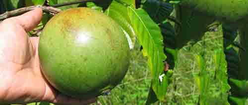 寶樂果粉取自寶樂果,也叫博羅霍,西班牙語為Borojo。它是一種生長在南美洲厄瓜多爾和哥倫比亞熱帶雨林地區(qū)的水果??礃幼用矗涿膊粨P,和番石榴差不多模樣,不過個頭稍大。直徑達7-12cm,還沒有成熟時呈綠色,成熟時轉(zhuǎn)為茶褐色,重量有五六個蘋果那么重,果肉柔軟多籽。味道酸澀粘稠。