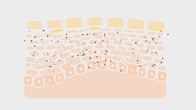下面是一張人體的皮膚結(jié)構(gòu)圖。在正常情況下,皮膚底部的基底層會不斷生成角蛋白細胞,然后不斷移動最終脫落。與此同時,同樣位于基底層的黑色素細胞會通過絡氨酸酶不斷制造黑色素,轉(zhuǎn)移進角蛋白細胞,搭起了“便車”。